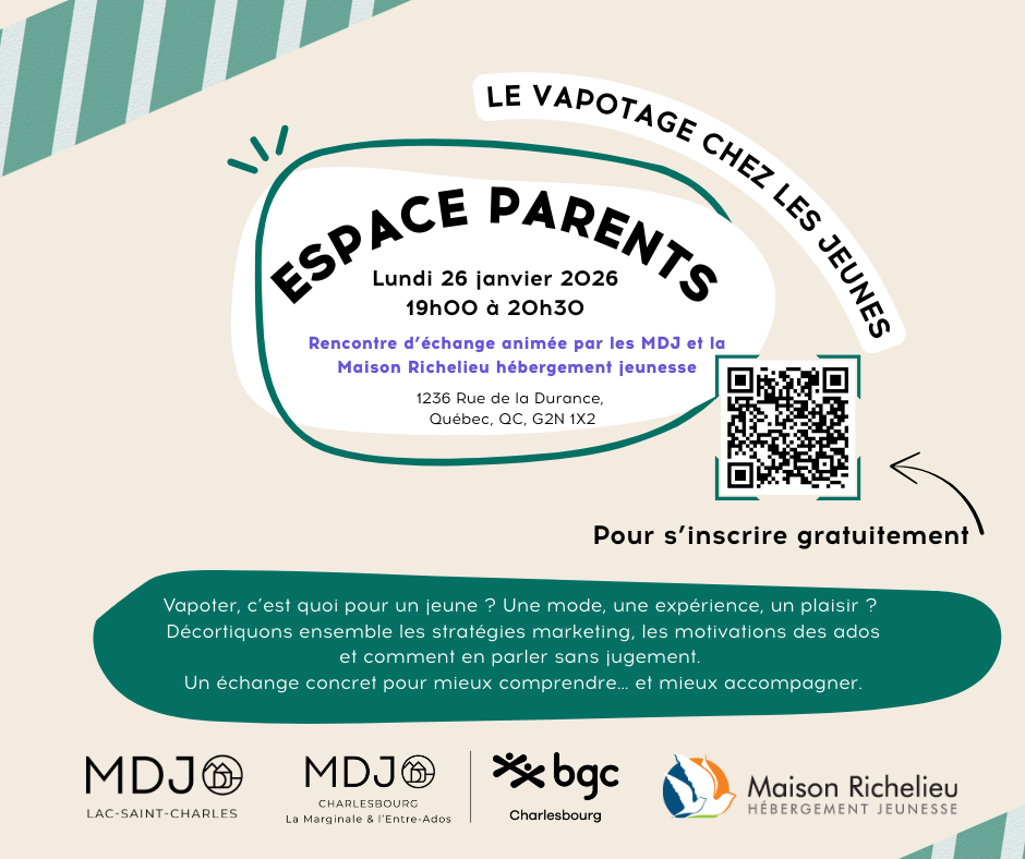 Accueil Nouvelles Atelier 26 janvier 2026 - Vapotage chez les jeunes Atelier 26 janvier 2026 - Vapotage chez les jeunes 12/01/2026 École le Sommet Catégorie(s) : N / C